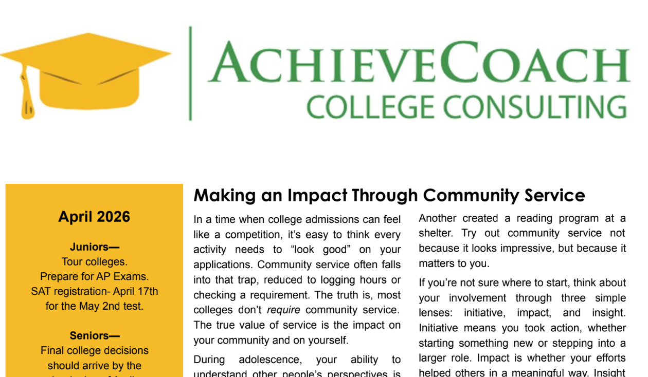 Students who want to gain confidence and ease by preparing ahead for college interviews, connect with AchieveCoach College Consulting to set up a personalized mock interview preparation.
