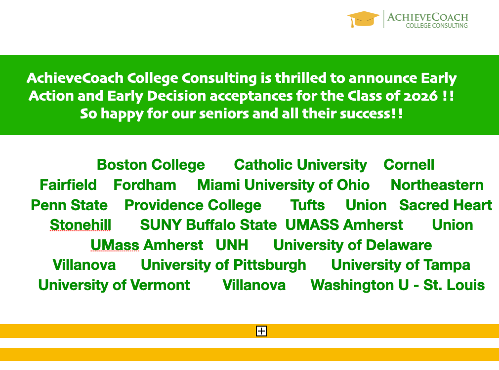 AchieveCoach College Consulting families are celebrating early admits and merit awards!!